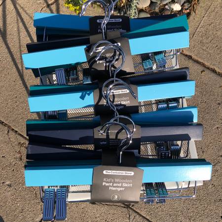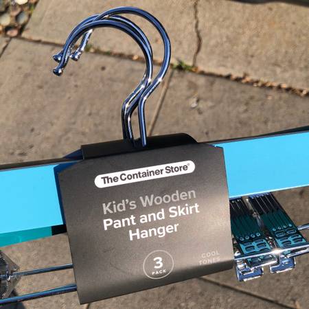 NEW*👉🏻5x 3 Pack Kids Wooden Pants Skirt Hangers 12x7” Blue Cool Tone...