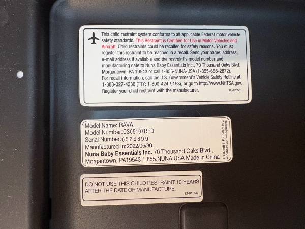 Selling two separate Nuna Rava car seats (original owner, purchased from Nordstrom) both with manufacture dates of 05/2022, still good for use another 7 years, accident free. Very recent fabric covers due to recall, now installed with updated covering that covers the harness adjuster. Includes instruction manual and infant inserts. Very well taken care of, selling due to our child moving on to a booster. Selling for $250 EACH.