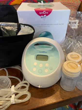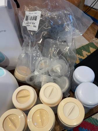 Top of the line Spectra S1 Plus breast pump, only used 2 pumps per day for about 4 months. This alone sells for over $200 new. Also included are a durable carrying bag, a bottle or milk cooler that keeps milk cold, a bottle drying rack, extra bottles & flanges, milk storage bags (both disposable and reusable), a Haaka wearable milk collector, and various extra parts (many unused).