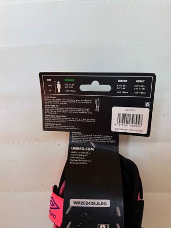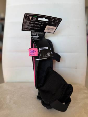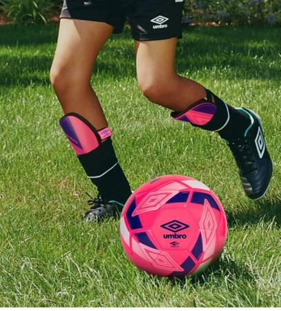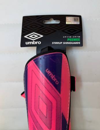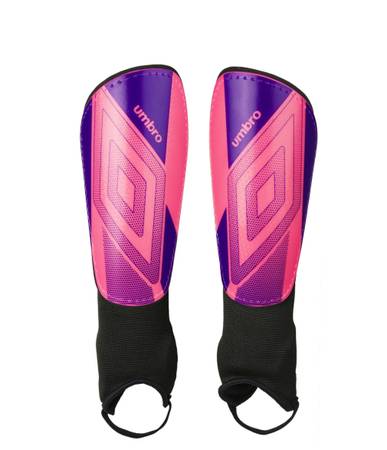 Equip yourself with reliable protection on the field with the new Umbro Ceramica Peewee Stirrup Shin Guards. Whether you're kicking, passing or guarding the net, these pink-colored soccer shin guards absorb shock and provide durable defense. Flexible ankle grips and adjustable upper straps offer superior protection for your shins and ankles while still allowing enough room for optimal range of movement. These kids ankle and shin protector sleeves are designed for children from 3'11" to 4'7" in height and come in an attractive pink pattern.