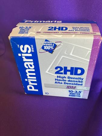 Primaris 3.5 2HD high density Diskettes IBM formatted. New – Unopened box - Best offer. Cash please