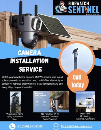 Firewatchsentinel.com These cameras are SOLAR and CELLULAR so NO ELECTRICITY NEEDED. 😀 We install Outdoor cameras. Specially in the Palisades and Altadena area where there is no power. Watch and...