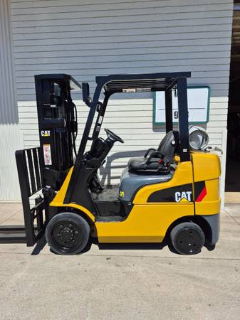 CATERPILAR 5000LB WAREHOUSE FORKLIFT, SOLID NON MARKING TIRES FOR IN WAREHOUSE VERSATILITY, 3 STAGE MAST 187INCH MAX LIFT, WITH SIDESHIFT, 42 INCH FORKS. GREAT LOW HOUR (7572 HOURS TOTAL USE) , STAY CA COMPLIENT WITH THIS EXCEPTIONALLY CLEAN LPG POWERED UNIT. INCLUDES 8 GAL LPG FUEL TANK