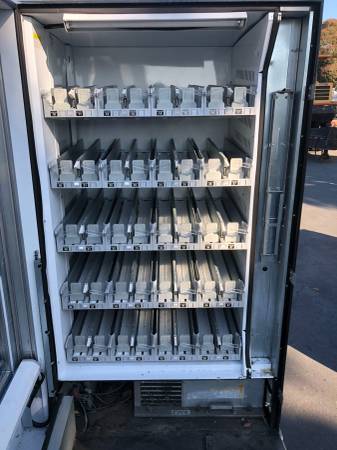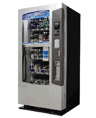 Up for sale great VENDO VUE 40 ROBOTIC SODA VENDING MACHINE 40 selections of cans and bottles of any size included Red Bull! Tested and fully working. Very quiet compressor. This type of machines are newer generation of robotic machines and they are very popular by vendors. Made in USA.