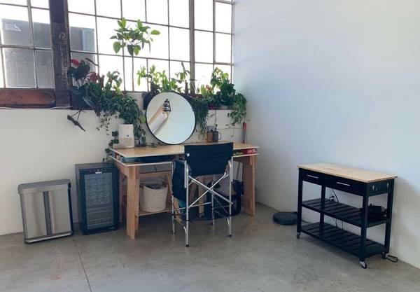 * The 24/7 access art studio is totally private, with walls built to the ceiling (17’)