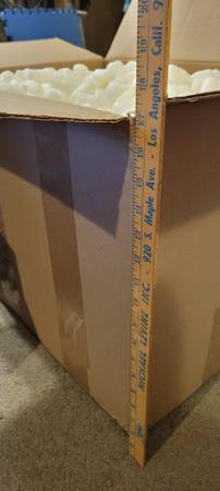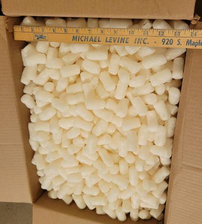 Big Box of Foam Shipping Peanuts Popcorn The box is 17" Tall x 19" W x 14" D and filled to the top with soft (biodegradable I think) foam pellets. I'm by the Wiltern Theatre.