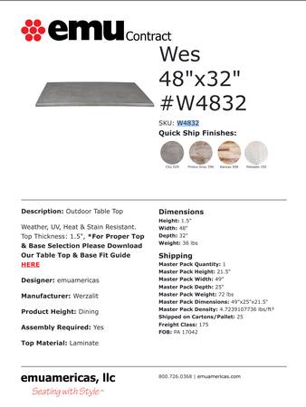 Emu Wes 48"x32" Tabletops (for restaurants) - business/commercial -...