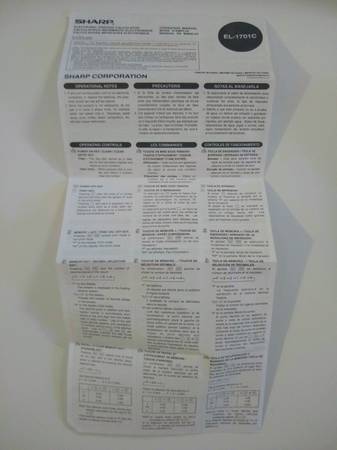 Sharp EL-1701C Printing Calculator with power cord & instructions Includes power adapter. Model EL-1701C.