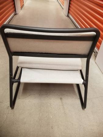 2 chairs, like new, extra clean. FREE curbside delivery is incl. Washable cushions, sun resistant. Super comfortable, back rest, beach or patio chair set of two. Thanks Grey cushions black flexible...