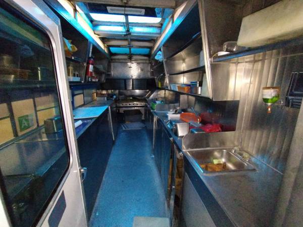 Very good condition. Flat grill, fryer, fridge, steam table, dual batteries, shelves etc....