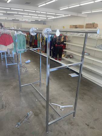 Garment rack is designed with adjustable levelers and hangrail heights from 49"-70" in 3" increments. It features tab stops that secure hangers on the hangrail as well as a chrome finish that...