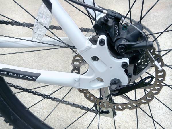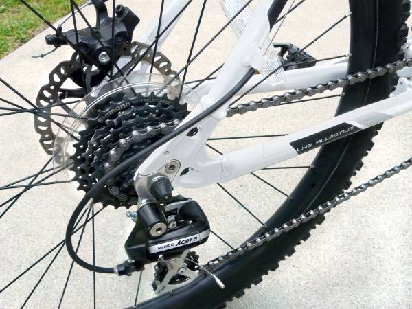 8 x 3 SHIMANO Acera 24Speed Rapid Fire Smooth Shifting Drivetrain. Front and Rear Dual Disc Brakes, Brand New WTB Tires, Water Bottle Cage, Double Wall Black Alloy Rims, Recently Tuned and Lubed, Wheels Trued, in NEW, Showroom Condition.
