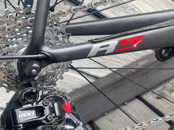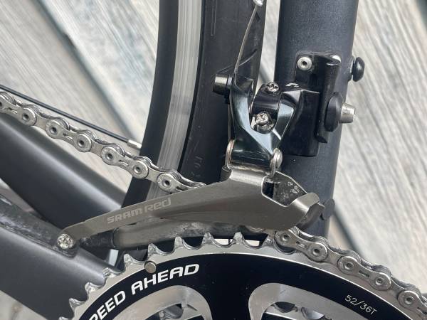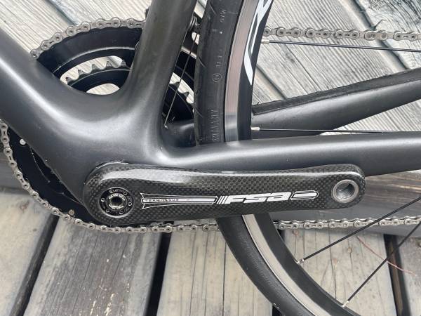 Known defects: 1) power meter not registering power. 2) paint abrasion on fork blade covered with temp patch (see photo) 3) Paint abrasion behind cranket (around BB) from time I was experiencing chain drops (see photo) 4) Paint abrasion on non-drive side chain stay (photo).