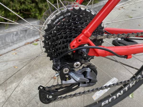 This bike is practically brand new. The red dragon. I have also have a brand new Kryptonite U-lock with 2 keys, bike mount, and a cable for an additional $50. If you're interested. Size: Large...