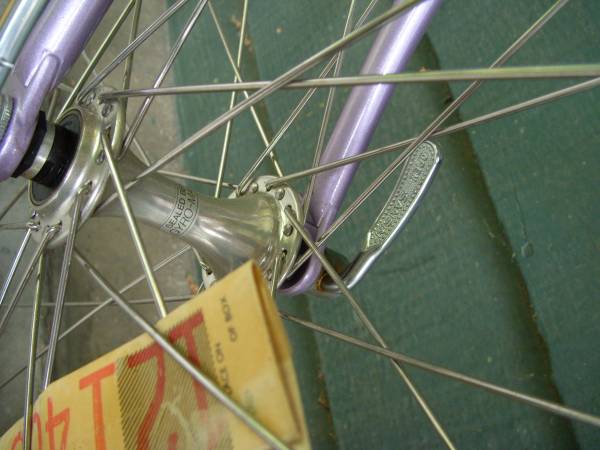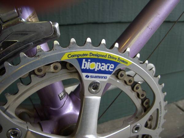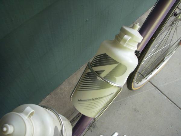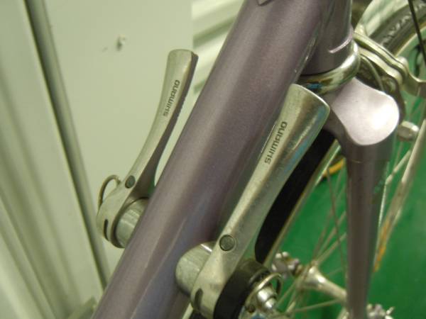 Beautiful metallic lavender Bridgestone road bike ridden less that 10 miles, time capsule condition with Shimano running gear, Shimano Biopace crank, Bridgestone saddle, tires, even water bottles! Two very small scratches are all that keeps this from NOS perfection.