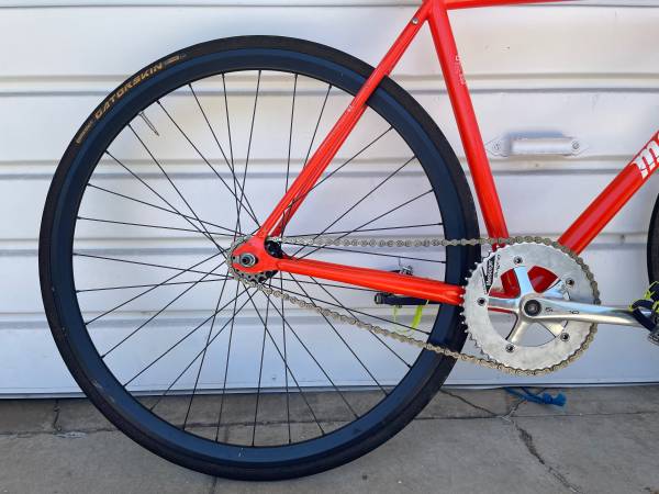 this is a perfect platform to customize as it offers a combination of a responsive, lightweight frame with the resiliency and suppleness of Reynolds steel tubing. the result is a balanced ride that will absorb the bumps and bruises of the road without sacrificing road feel. the geometry is modeled after successful track designs though less aggressive for everyday use.