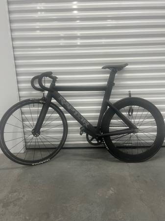 Selling my RAPTR fixed gear bike in excellent condition. Sleek matte black design, lightweight frame, and deep dish rear wheel for speed and style. Perfect for city riding, commuting, or anyone looking for a high-performance fixed gear setup.