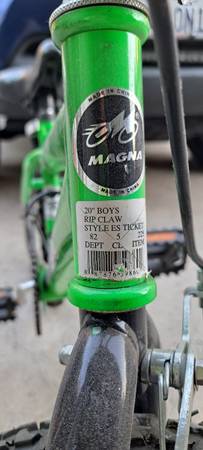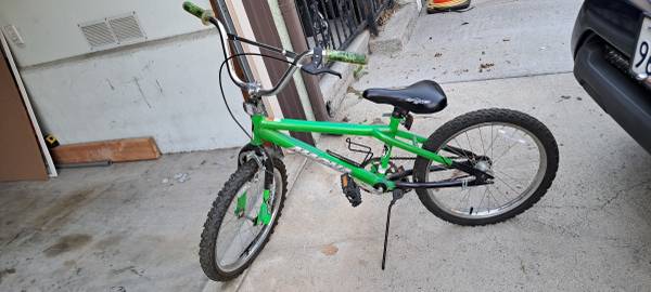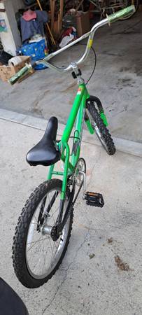 Kids bicycle. See pictures for condition. Always garaged and no signs of elements wear. Hardly used. Store stickers still on it. Tires hold air just fine and everything works just as well.