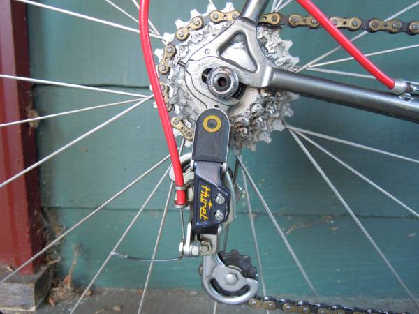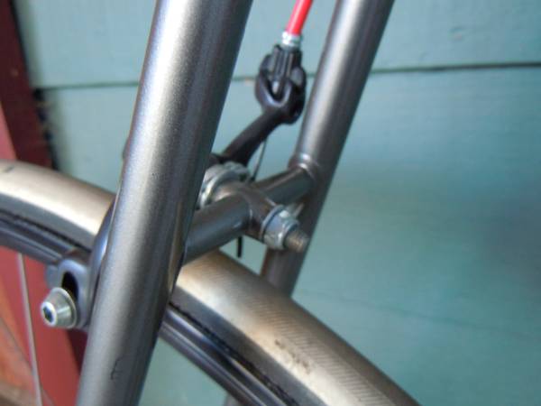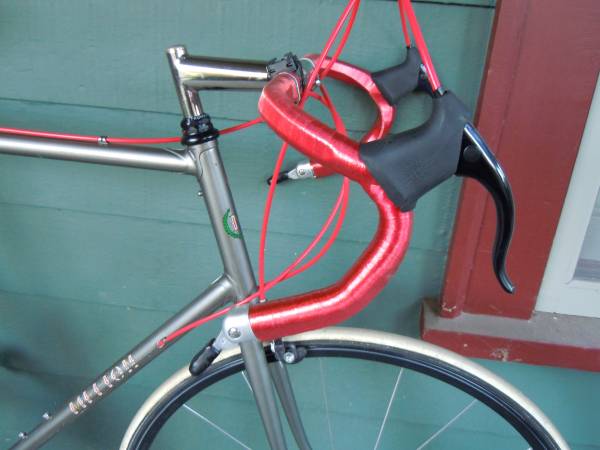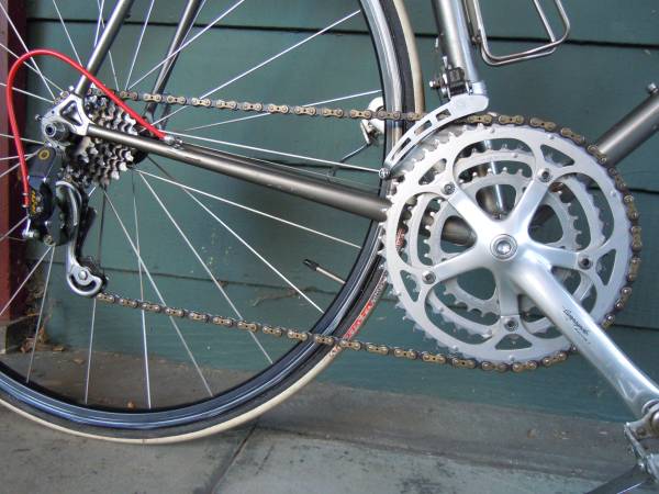 Beautiful and unique Melton frame and fork built with a curated collection of unusual light and attractive parts including CLB brakes, Roval wheels, Modolo bars, titanium stem, Huret Duopar rear derailleur, Campy triple crankset and bottom bracket.