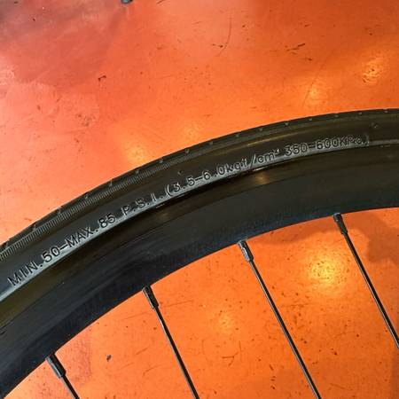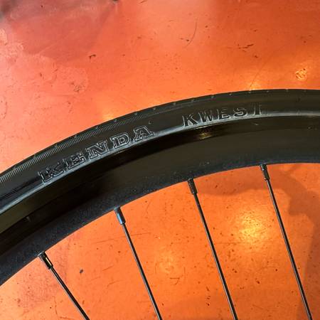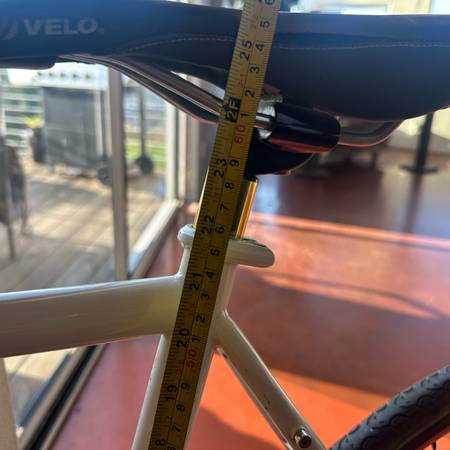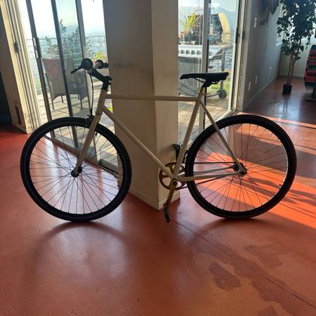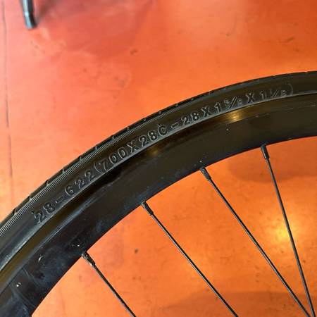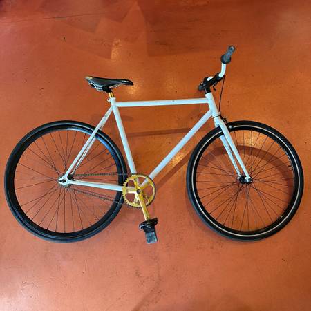 white, has some light dings. bike has always been stored indoors and well taken care of. it is ready to ride upon purchase. 700c wheels