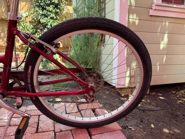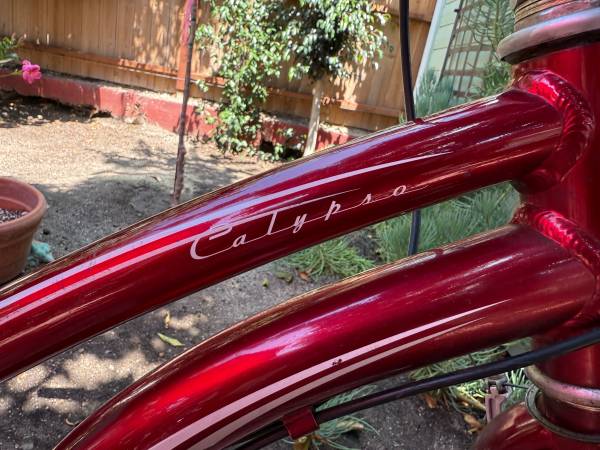 Classic Trek Calypso cruiser bike in a beautiful metallic red finish. This comfortable cruiser is perfect for beach rides, weekend cruising, or everyday neighborhood riding.
