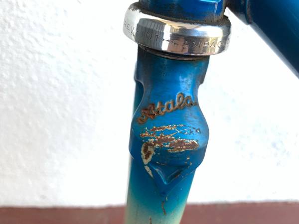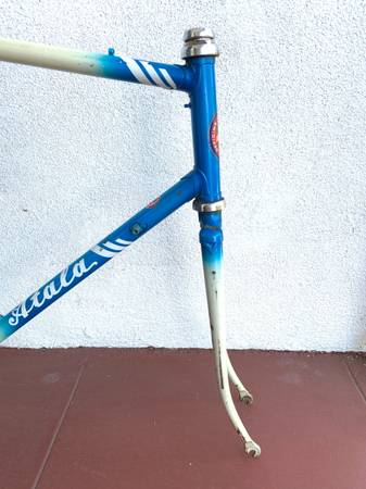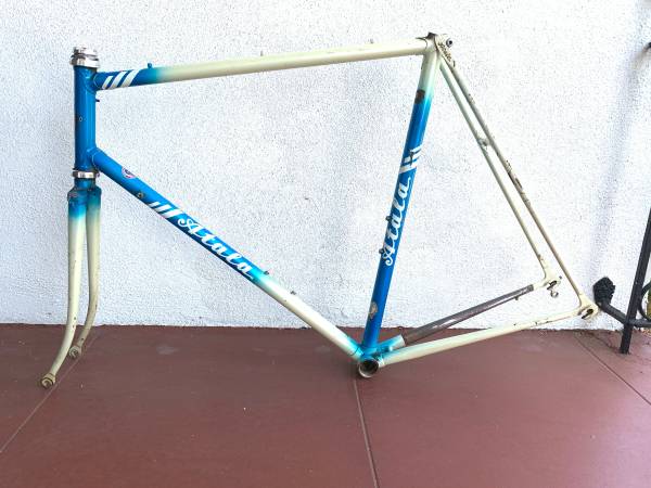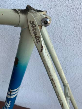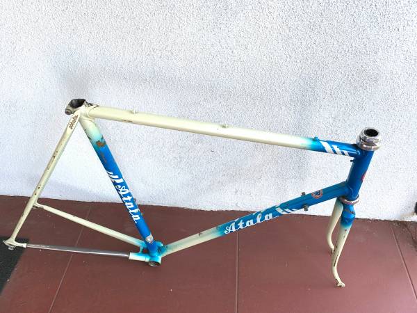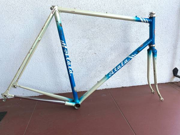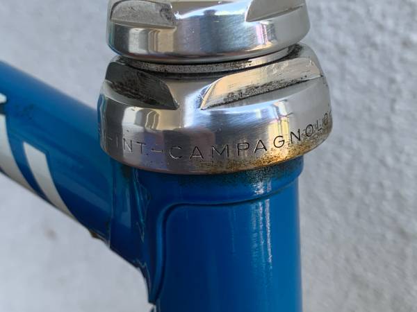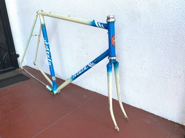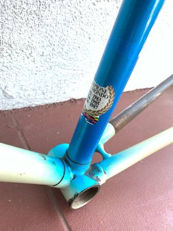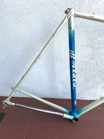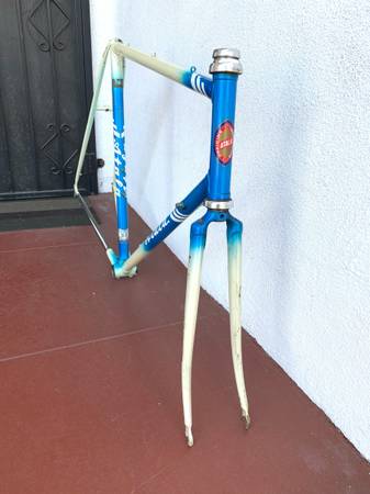 Great frame with some scrapes in places, but no cracks or other structural issues. Measures 23 inches center to center seat tube, 22 1/2 inches center to center top tube. Campagnolo headset. Headset is fixed, needs to be removed and repacked. This is my lowest price.