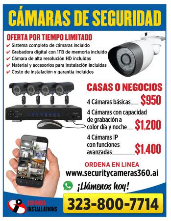 Special Promo 4 HD Security Cameras with Installation Service starting at $950 for home or Business locations and mobile App access. Get a Free Estimate today! Please check our job here is the video https://youtu.be/FTyPQYb-3vA