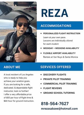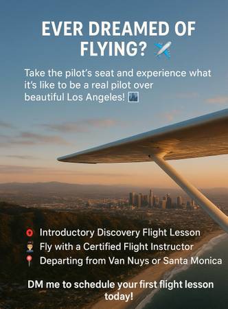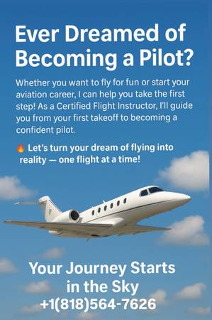 Whether you want to fly for fun or start your aviation career, I can help you take the first step! As a Certified Flight Instructor, I'll guide you from your first takeoff to becoming a confident pilot.