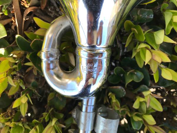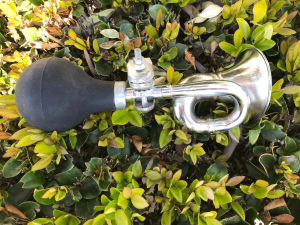 Offering a Like BRAND NEW VINTAGE (1970’s) CONDOR Horn Squeeze Bulb Bike Horn.works great & very Load, ready to put on your old collectable Raleigh, Rudge, Hercules, Robin Hood, Gazelle, Humber, Schwinn or whatever it is you have!! The Chrome of the Horn OVERAL LIKE BRAND NEW & the Rubber Bulb is JUST LIKE NEW TOO. Price $200 FIRM CASH & LOCAL PICK UP. Email is only the way you can contact with me.