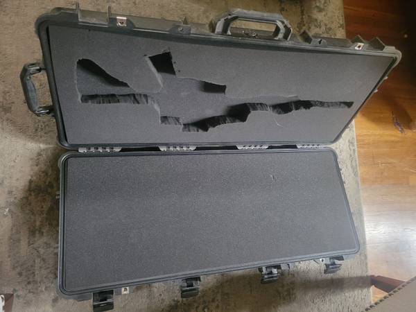PelicaanVault box. Like new, will need a bit of cleaning. It was a clearance sale open box. Single case in like new condition. You can get measurements from the website. Cash ONLY, Pickup ONLY