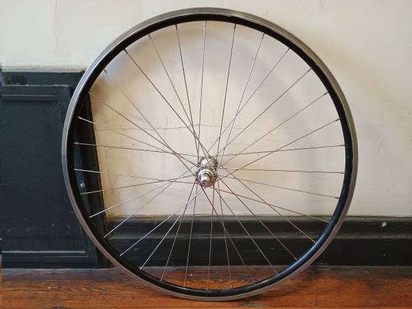 The rim is perfectly straight. The spokes are tight. The hub spins smoothly. It's in perfect condition.
