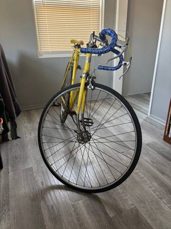 Make an offer. Trades considered. Schwinn Le Tour fixie (no gears) bicycle. Pros: Great frame. Relatively new yellow seat in good condition. Durable. Kickstand good. Chain good. Cons: Front tire...