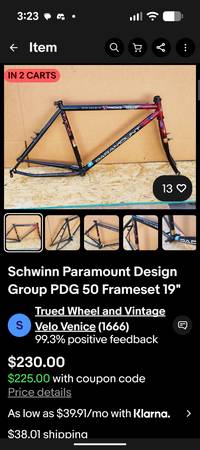 Schwinn Paramount Design Group PDG 50 Frameset 19" - $230 (West Adams)