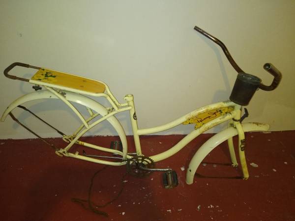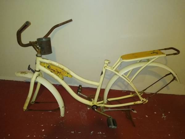 Panama Jack bike frame, used. It might be hard to see in the photos, but most of what looks like splotches are flowers which are part of the original design.