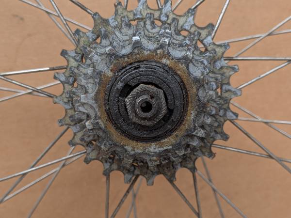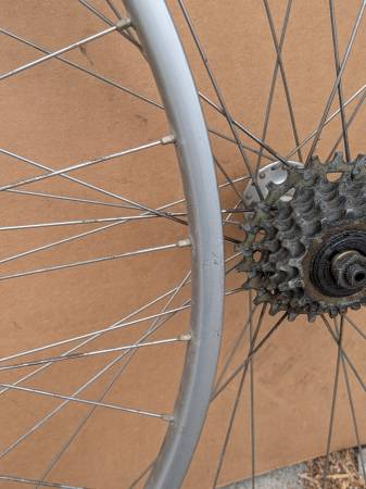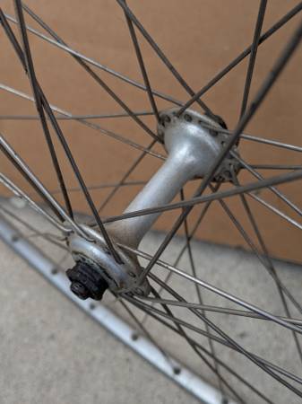 These are on good condition... although dirty, they should clean up very nicely. Very little brake surface wear. Smooth bearings. Round and true rims. Smooth Suntour freewheel. 126mm rear. Clincher.