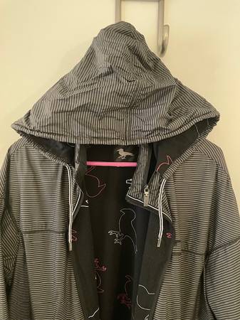 Great jacket in great condition! Hide the hood when you don't need it! Stripes are grey Must pick up in Glendale Cash or Zelle accepted