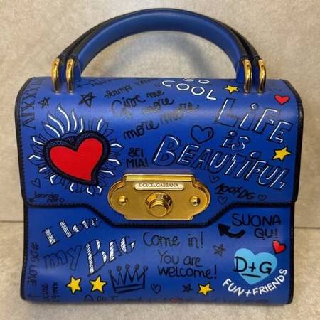 Dolce & Gabbana Calfskin Graffiti Printed Welcome Satchel Great Condition Minor Scuffs on Interior Color: Blue Material: Calfskin Authenticity: Card Included Graffiti Dust Bag Included Comes as...