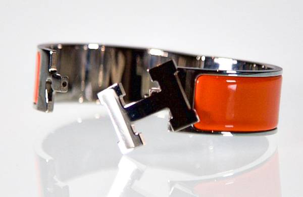 Hermès Clic Clac H Bracelet (Platinum and Orange Enamel, Used, Good Condition)