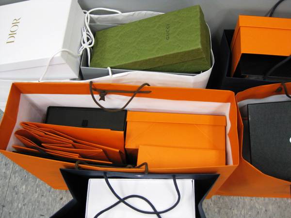 For Sale a Lot of Original Hi-End Fashion Brand's Bags and Boxes. 9 bags of different sizes and 26 boxes (19 for shoes). All in excellent condition. Dior, Gucci, Hermes, Louis Vuitton, Chanel,...