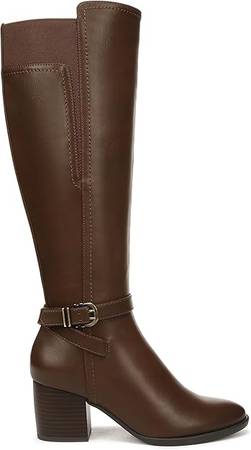 Comfortable, all day block heel boots for women with wraparound strap and buckle detail