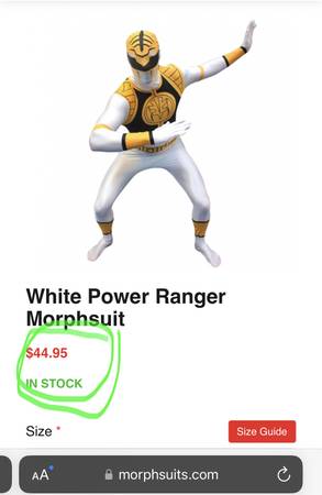 - Get ready to save the world with the men's Power Rangers White Ranger Morphsuit costume. Feel like a true superhero as you pull on this amazing fancy-dress and get guaranteed laughs and attention at any party or event you attend. This high quality Power Rangers Morphsuit is based on Morph Costumes original and best-selling product and uses premium quality materials and features a fast, easy double-zip entry.