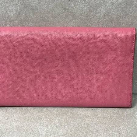 Prada Saffiano Lux Leather Continental Wallet Used Has Dirt Marks on Exterior/Interior (seen in images) Color: Pink Length: 7.5" Width: 4.5" Height: 1" Comes as Seen View Images for Visual...