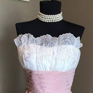 Lace top, lined and structured. Comes with a wrap made of the same pink material.