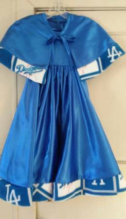 Never worn Dodgers Satin Dress with fleece. Size 6 with Caplet.