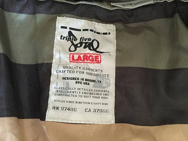 WINTER JACKET by TRIPLE FIVE SOUL zip off hood // lots of pockets ! unisex size LARGE BRAND NEW CONDITION $200.00 O.B.O. cash only! all sales final / no drama / thank you / please send your phone #...