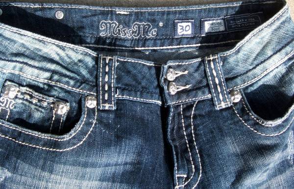 Six different pairs of women's jeans, barely worn, very clean and in great condition. $10 to $20. In the order the photos appear - 4 photos of each pair: Miss Me - 30 W, 32-34 Leg. Condition: New....