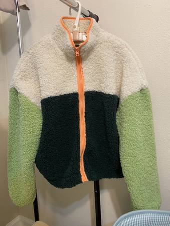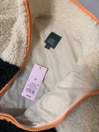 Brand new, never worn nice Green Block color block Sherpa jacket by Wild Fable sz: XS. Tags still attached. 100% polyester Long sleeve, mock, color blocked detail, zipper detail, shearling accents,...