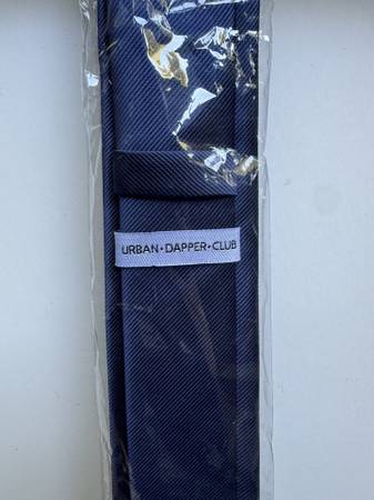 Urban Dapper Style Neck Skinny Tie Ribbed Pattern Navy Blue Woven - $8