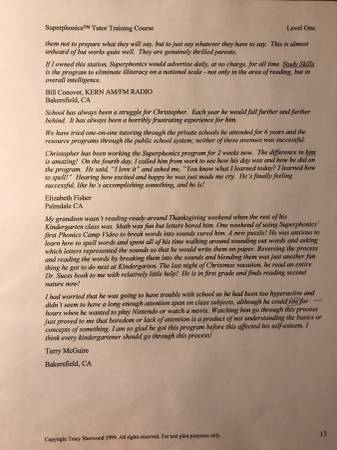a sample success story from one student’s chiropractic doctor and parent testimonials will be sent to you in response to your resume and personal summary.