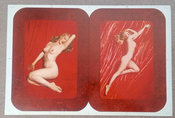 I have for sale a large rare sheet metal print of two famous Marilyn Monroe poses from the 1950's era. Excellent detailed color prints. The artwork is printed on a thin sheet metal which measures approx. 30" wide x 20" high inch. There are some scratches and small blemishes, most notably the blemishes on the left near Marilyn's foot (see image close up). The artwork could be framed or mounted as is. Contact Leonard show contact info